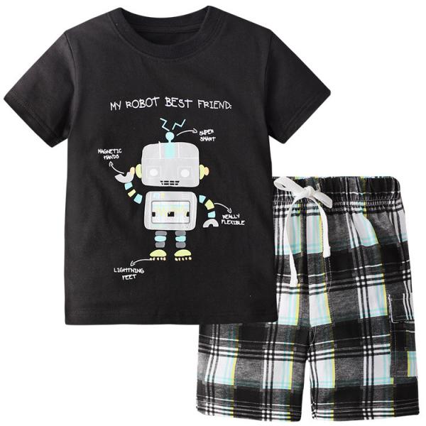 Children's Outfit Sets Summer Cotton Clothing Cartoon Robot Suit Little Boy Clothes